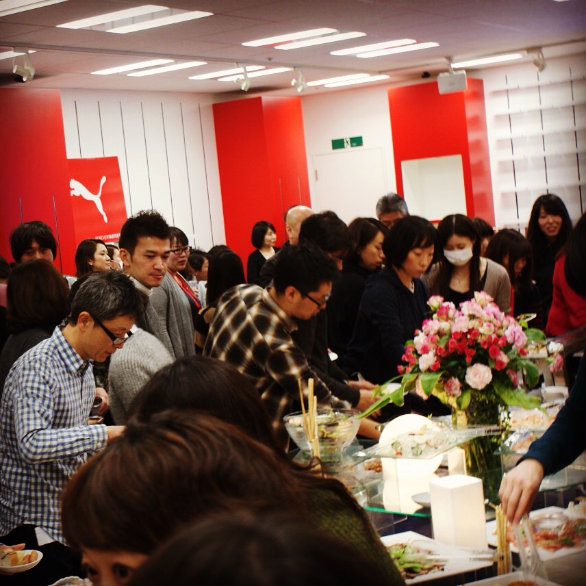 みなさん一斉に料理を取りに行き、大人数だったので迫力がすごかったです!(笑)